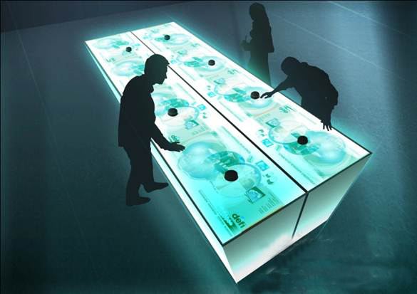 晟跡數(shù)字技術(shù)的觸控展示臺,利用紅外感應設備識別用戶手指動作,通過識別控制系統(tǒng)對高清顯示畫面進行操作。用戶通過雙手進行單擊、雙擊、平移、拉伸、縮放以及旋轉(zhuǎn)等不同手勢觸摸屏幕,對文字、視頻、圖片、動畫等信息進行瀏覽,互動方式非常靈活。