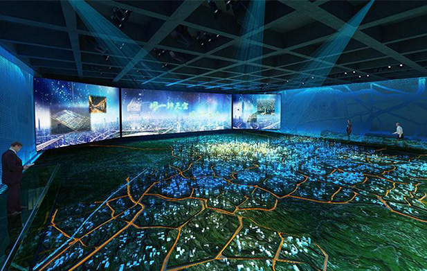 投影數字沙盤主要由許多高科技多媒體技術實現。將模擬的三維立體印象準確地投影到實體模型的相應方向,并反映與物理沙盤交互播放的演示,從而使沙盤的演示效果更加生動。此外,訪問者還可以通過物理動作與大屏幕上的圖片模型進行交互,從而滿足訪問者更深層次的查詢內容并快速獲取動態信息。