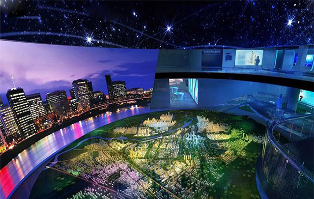 城市規劃數字沙盤制作是由大型液晶投影屏和觸摸顯示屏一體機用于以聲、光、電等多種形式顯示一個城市未來規劃。更重要的是,城市的招商引資活動離不開規劃大廳的支持。城市規劃大廳將研究結果制作成數字沙盤,并借助數字沙盤的視覺圖像特征顯示研究結果。
