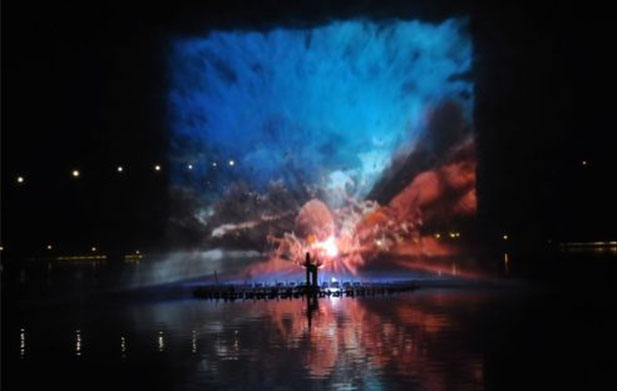霧幕投影系統使用超聲集成霧化發生器產生大量的顆粒霧,并結合氣流原理產生平坦的霧。將粒子的粒子平面特性用作光路載體,然后將特殊的光滑生動的介質流體投射到載體上,在空間中形成虛構的立體圖像,從而形成三維立體圖像,從而獲得了新的一種空間。